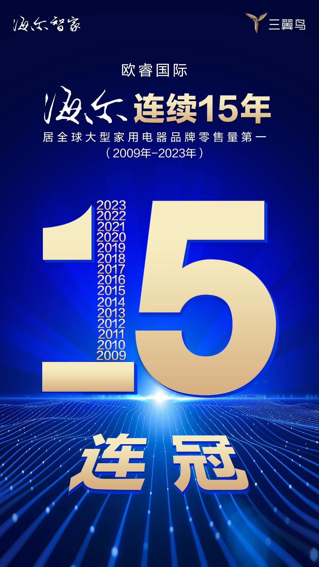 歐睿國際:海爾全球15連冠