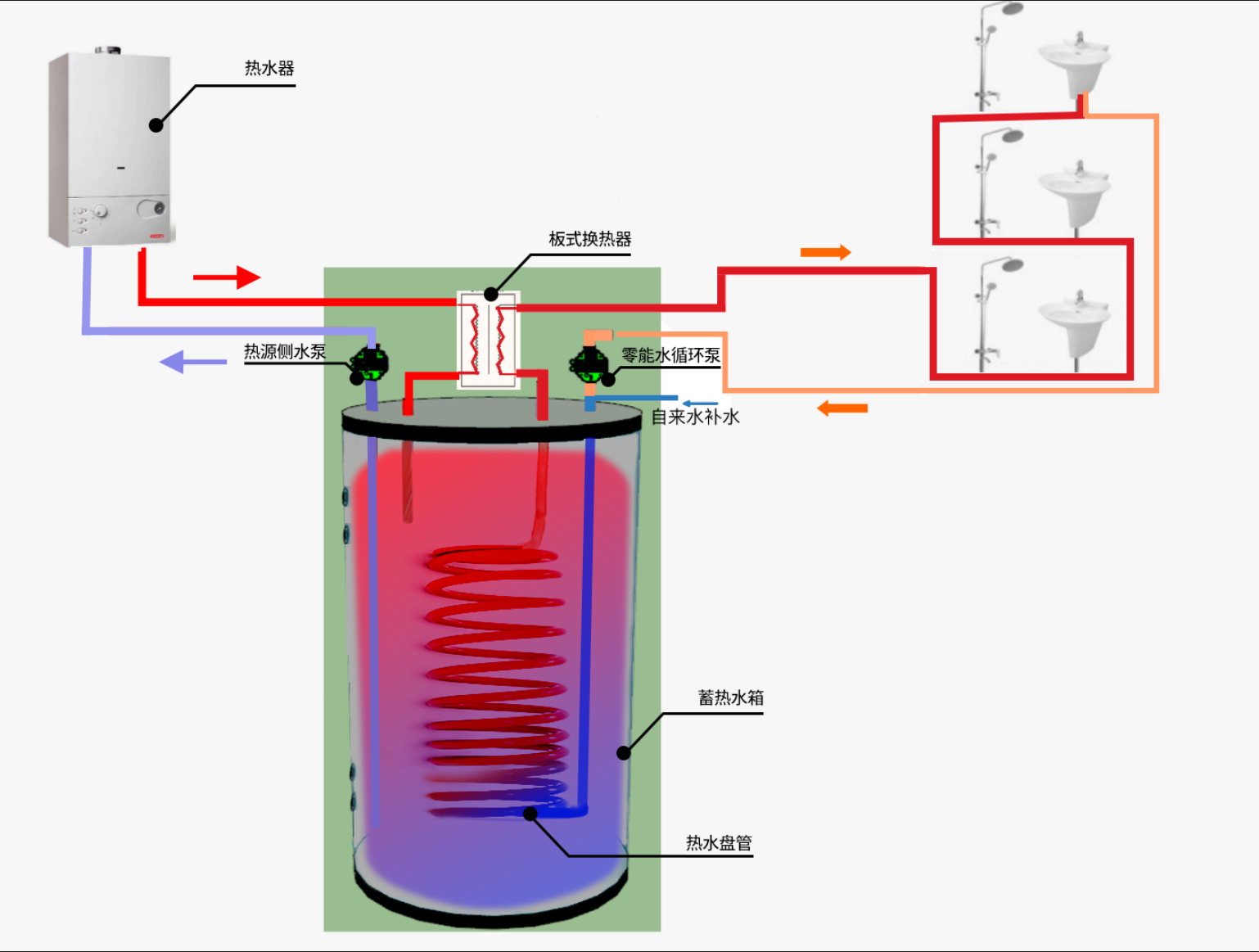 原因3:帶有蓄熱水箱的熱水系統(tǒng),因?yàn)樾枰3譂M足洗浴時(shí)的高溫,水箱里的水溫會(huì)很高。當(dāng)無(wú)人用熱水時(shí),水箱里上下層溫差較小,熱水器的進(jìn)出水溫差也會(huì)很小,使其加熱效率降低,能耗加大。熱水器進(jìn)出水溫差一般要達(dá)到15-25℃,運(yùn)行效率才能達(dá)到其額定運(yùn)行效率,而常規(guī)蓄熱水箱的熱水系統(tǒng)其溫差往往在10℃以內(nèi),導(dǎo)致效率低下、能耗增加。