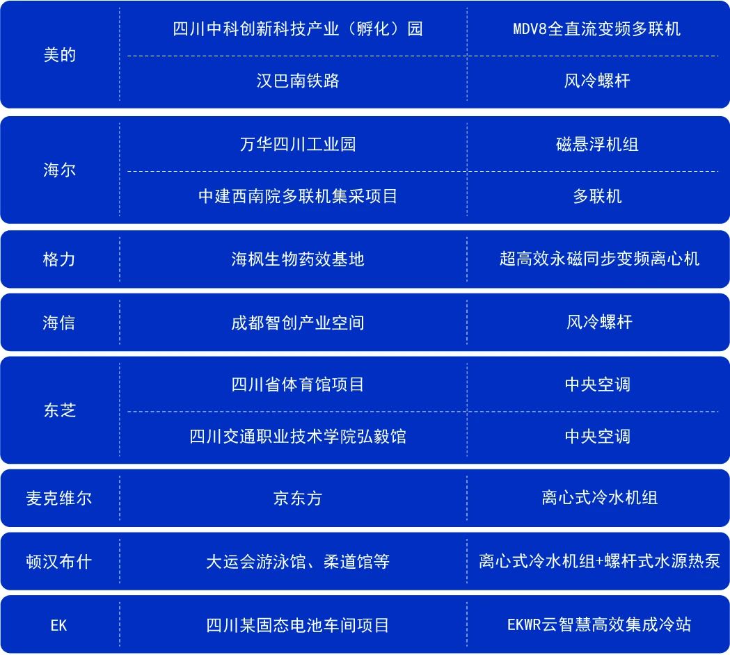 四川工程市場(chǎng)近兩年一直處于增長(zhǎng)的態(tài)勢(shì),在醫(yī)院、新能源、電子廠房為代表的細(xì)分市場(chǎng)的助力下,部分品牌上半年在工程項(xiàng)目市場(chǎng)的出貨增長(zhǎng)十分明顯。值得一提的是,從2022年至今,大運(yùn)會(huì)場(chǎng)館建設(shè)等也進(jìn)一步促進(jìn)了工程市場(chǎng)新的增長(zhǎng)點(diǎn),與此同時(shí)帶來(lái)的是周邊配套設(shè)施的增加,諸如餐飲、酒店、娛樂(lè)等行業(yè)顯著回暖,中小項(xiàng)目數(shù)量有所提升。正因如此,離心機(jī)、螺桿機(jī)、模塊機(jī)、末端等市場(chǎng)均有不同幅度的增長(zhǎng)。