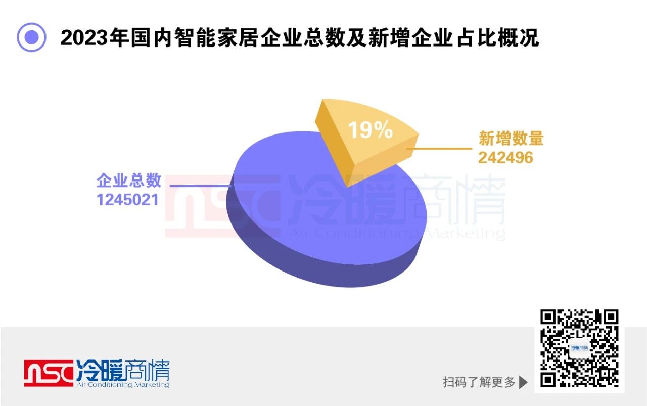 據(jù)企查查數(shù)據(jù)顯示,截至12月18日,2023年我國智能家居企業(yè)總數(shù)高達(dá)1245021家,僅2023年一年就新增242496家,占比約19.5%。(注:“智能家居企業(yè)”指企業(yè)名稱、品牌/產(chǎn)品或經(jīng)營范圍包含“智能家居”,在業(yè)/存續(xù)狀態(tài),不含港澳臺地區(qū))