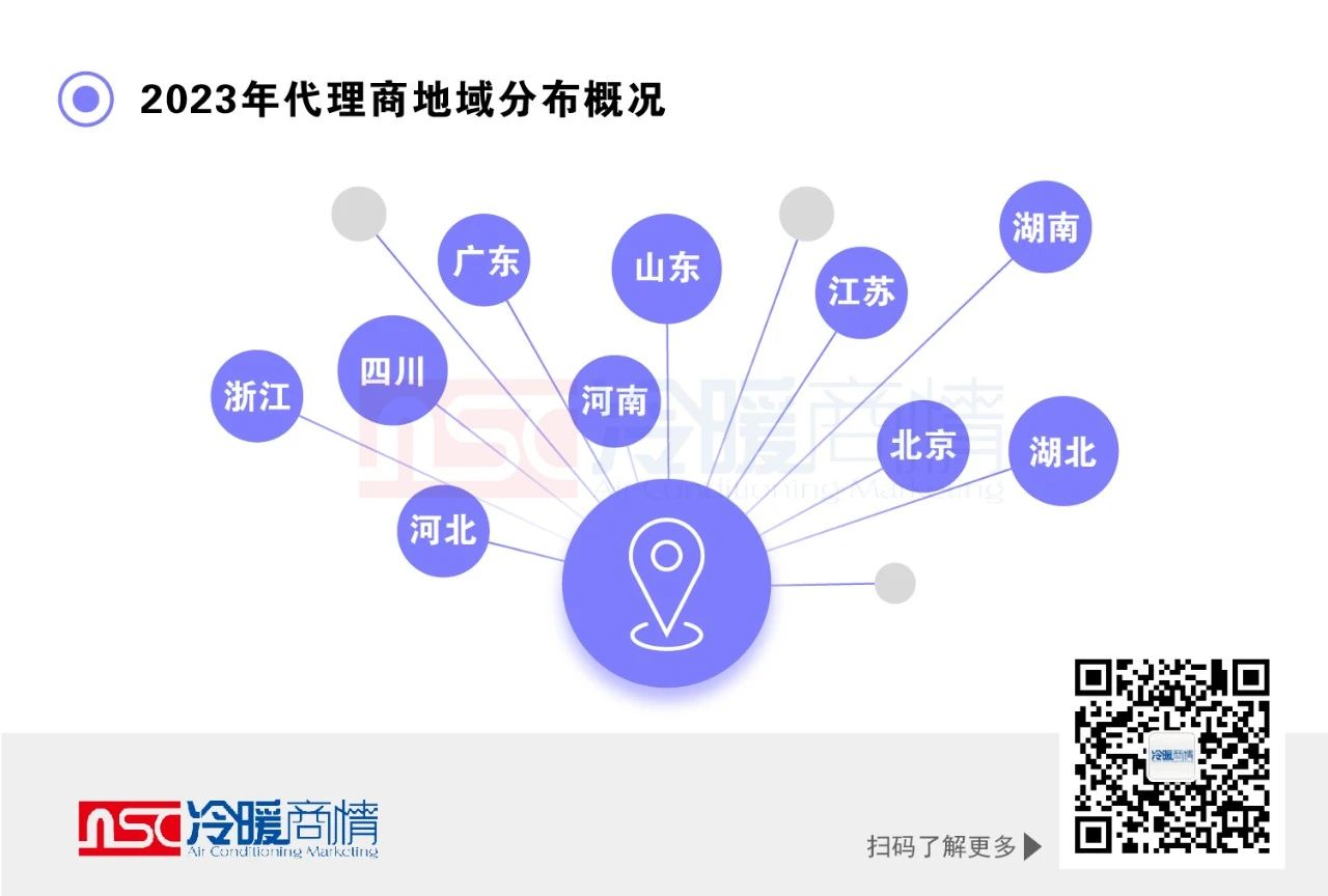 據(jù)冷暖商情統(tǒng)計,2023年代理商最多的省份為:廣東省、山東省、江蘇省、河南省、四川省、浙江省、河北省、湖南省、北京市、湖北省。