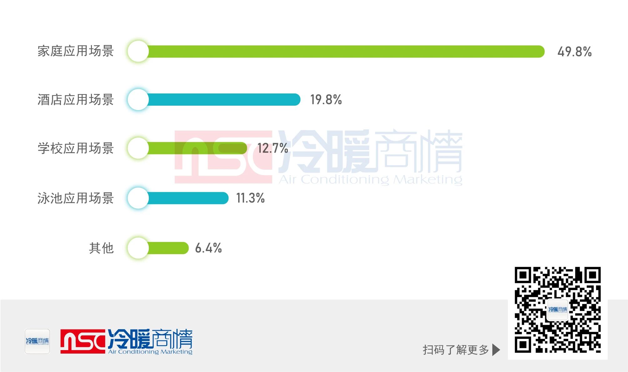熱水市場中,分體機(jī)以81.2%的份額占據(jù)絕對主流。家庭應(yīng)用場景貢獻(xiàn)了近一半的需求(49.8%),酒店與學(xué)校緊隨其后,構(gòu)成穩(wěn)定的B端市場。