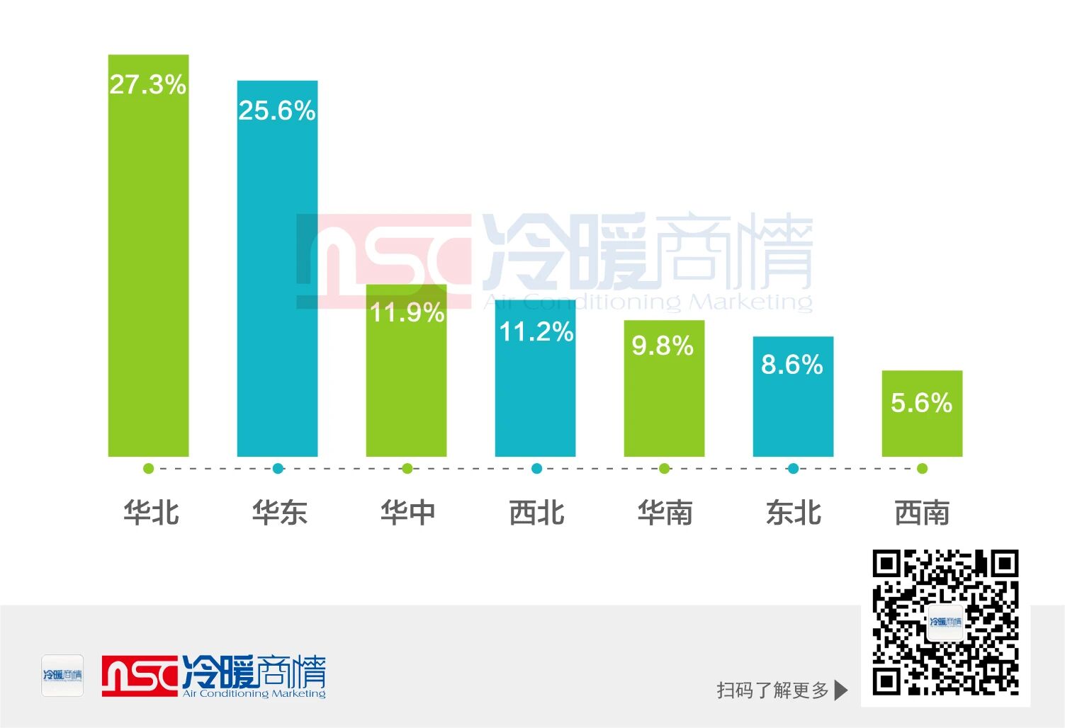 區(qū)域市場表現(xiàn)與氣候條件、政策歷史及經(jīng)濟(jì)水平緊密相關(guān)。華北地區(qū)(27.3%)與華東地區(qū)(25.6%)合計(jì)占比超過一半,成為最重要的區(qū)域市場。華北地區(qū)得益于早期“煤改電”政策的深入實(shí)施與持續(xù)替換需求;華東地區(qū)則依靠較強(qiáng)的經(jīng)濟(jì)實(shí)力與消費(fèi)者對生活品質(zhì)的追求,在熱水與采暖市場表現(xiàn)突出。華南、西南等市場占比相對較小,市場需求更傾向兩聯(lián)供產(chǎn)品。
