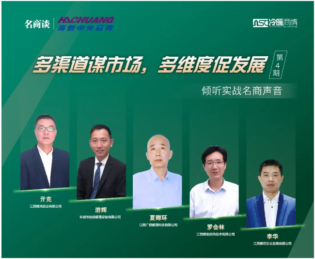 “名商談”第4期之江西市場,我們將通過江西贛鴻實業(yè)有限公司亓克、豐城市捷誠暖通設(shè)備有限公司游輝、江西廣順暖通科技有限公司夏卿環(huán)、江西搏陽供熱技術(shù)有限公司羅會林、江西省善臣實業(yè)發(fā)展有限公司李華5位名商創(chuàng)始人的實戰(zhàn)分享,為大家?guī)韱l(fā)和參考。