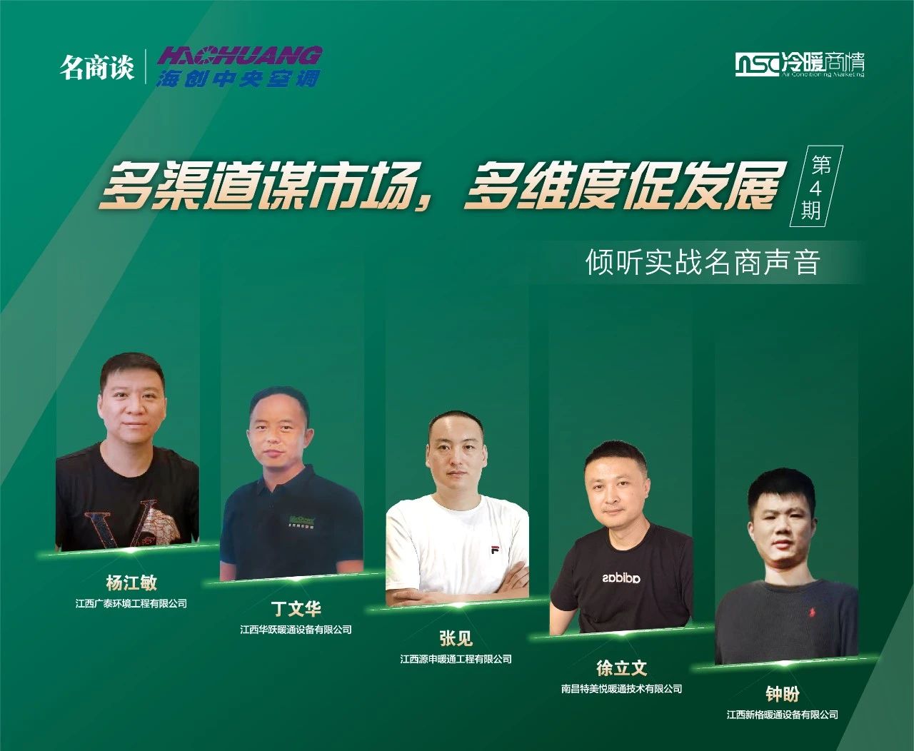 “名商談”第4期之江西市場,我們將通過江西省廣泰環(huán)境工程有限公司楊江敏、江西華躍暖通設備有限公司丁文華、江西源申暖通工程有限公司張見、江南昌特美悅暖通技術有限公司徐立文、江西新格暖通設備有限公司鐘盼5位名商創(chuàng)始人的實戰(zhàn)分享,為大家?guī)韱l(fā)和參考。